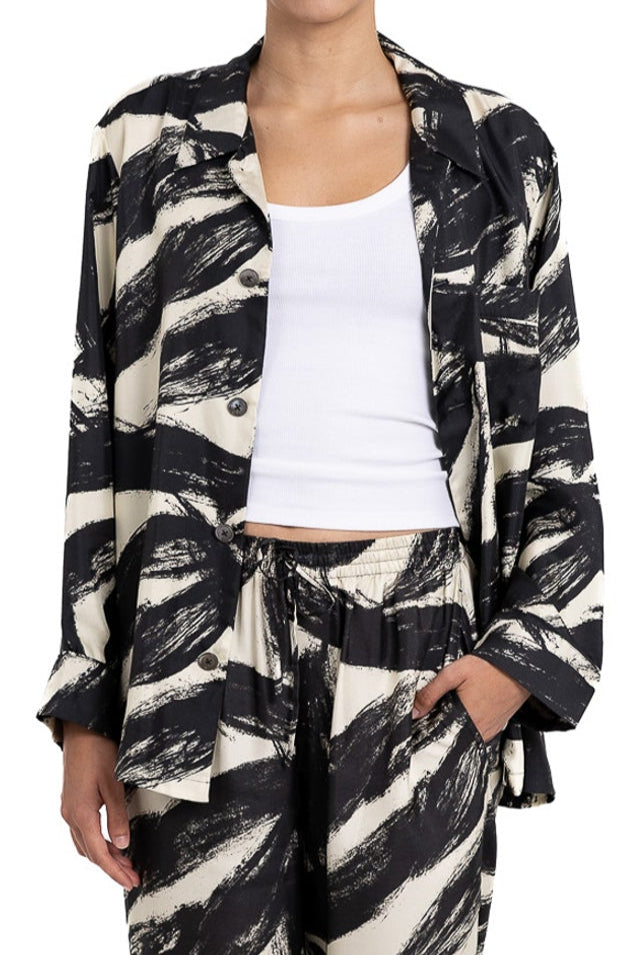 CROPPED HAWAIIAN SHIRT Cheeta Dots Navy