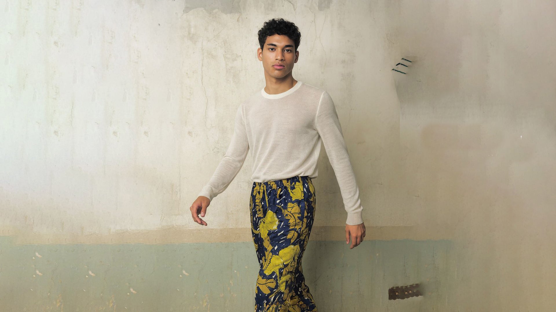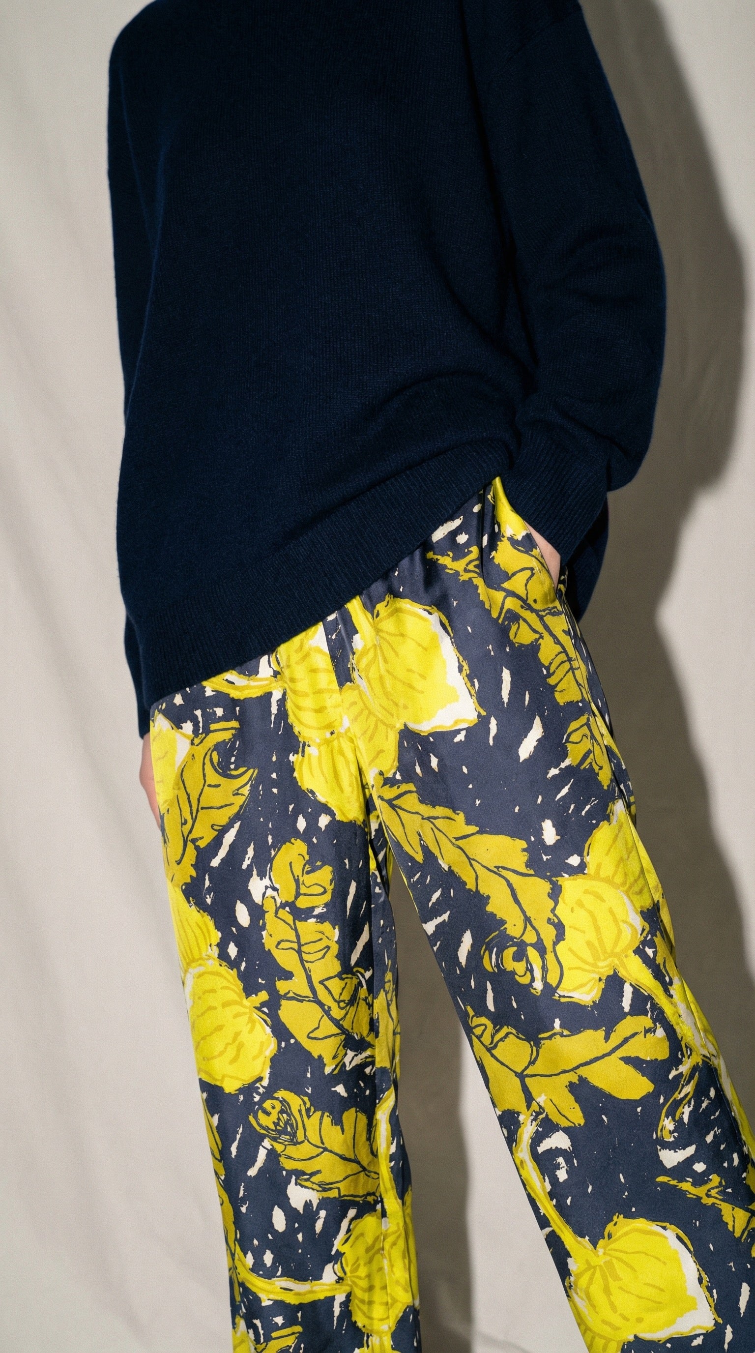 EASY PANT AUTUMN LEAVES NAVY YELLOW